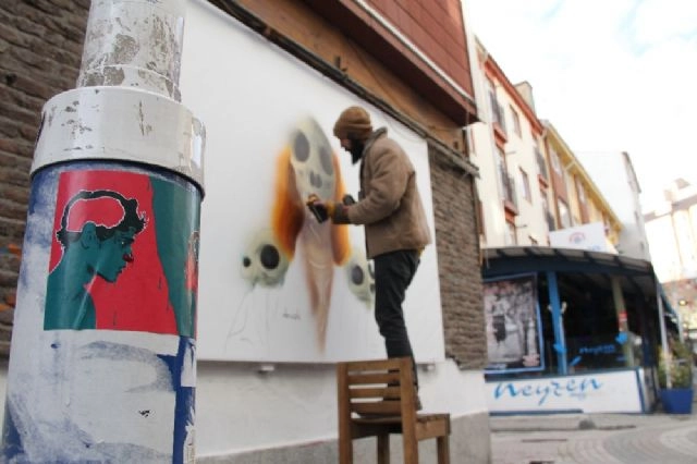 Eskişehir'de yaşayan 27 yaşındaki sanatçı Aybars Yücel, hızla betonlaşan kentlerin daha renkli hale gelmesi için yaptığı çizimlerle sanatı sokağa taşıyor. Sokak sanatı, daha çok ressamların duvarları, sokakları yani kamusal alanları renklendirmesiyle ortaya çıkan çalışmaları kapsıyor. 1980'li yılların başlarında dünyaya yayılan ve bugünlerde sosyal medyanın etkisiyle tekrar popülerleşen sokak sanatı, Eskişehir'de 'devak' ismiyle çizimler yapan Aybars Yücel ile tekrar gün yüzüne çıktı. Son dönemlerde çok tartışılan betonlaşan şehirler meselesine çözüm öneren Yücel, çizimleriyle 7'den 70'e herkesin beğenisini kazanıyor.AMAÇ SOKAĞA BİR İZ BIRAKMAK Çizimin eskiden beri hayatının bir parçası olduğunu belirten Eskişehir Osmangazi Üniversitesi (ESOGÜ) Görsel İletişim Tasarım Bölümü mezunu Aybars Yücel, "İlk önce Konya'da Makine Resim Konstrüksiyon Bölümünü okudum. Fabrikada çalışırken bir anda güzel sanatlara hazırlanmaya başladım. Ankara'da yaşıyorum. Eskişehir'i sevdiğim için uzun süredir burada kalıyorum. Çizime 7 yıl önce başladım, sokak sanatıyla uğraşmaya ise 4 yıl önce başladım" şeklinde konuştu."ÇİZİMLERİMDE HERKES FARKLI BİR ŞEY GÖRÜYOR"Çizimlerinde daha çok mekanik insanlara yer veren Yücel, "Yazın Akdeniz ve Ege bölgelerini gezerek bu işi yapıyorum. Gezerken sırt çantamda mutlaka boya oluyor, canım sıkıldığında otomatikman başka şehirlerde de boyuyorum. İş olarak da aynı zamanda bunu yaptığım için başka şehirlerden çağrılıyorum. Kafe olur, otel olur, benzeri yerler olur. Onun dışında bir şehre iş yapmaya gittiysem orada sokakta mutlaka bir iz bırakıyorum. Yani geçim kaynağım bu. Yüzey benim için fark etmiyor yani ha kağıda çizmişim ha tablo kanvasa çizmişim ha sokakta duvara çizmişim. Hepsi benim için aynı görünüyor. Duvar olması biraz daha cezbedici geliyor sokakta olduğu için. Sonuçta oraya bir iz bırakıyorsunuz ve sokaktan geçen bir insan için çok farklı anlamlar ifade edebiliyor. Orada anlattığınız şeyi herkes kendisi yorumluyor. Her bir çizimde farklı bir şey var. Ben anlatıyorum ama ne anlattığımı açıklamıyorum. Ben buraya bir şey çizdim, sen buna baktığında başka bir şey görürsün, başkası baktığında da başka bir şey düşünür. Yani insanlar kendisi yorumluyor, bu da benim daha çok hoşuma gidiyor" şeklinde konuştu."ŞEHİRLERDE TOPLU OLARAK RENKSİZLİK VAR"Ayrıca daha önce çevreyi kirlettiği gerekçesiyle kendisine para cezası da kesildiğini belirten sokak sanatçısı Aybars Yücel sözlerine şöyle devam etti:"Duvara kadın çizdiğim için binadan çıkan birisi 'bizim binamıza nasıl kadın çizersin' diye ağır bir tepki gösterdi. Kimisi de 'bizim binamızı güzelleştirdin, teşekkür ederim' dedi. Toplu olarak şehirlerde grilik var, renksizlik var, çirkin bir mimari anlayışımız var. Bunları değiştiremeyiz ancak bir şeyler yapabiliriz. Burası beyazdı üzerine çizim yaptım, renklendi. Otomatikman buranın algısı değişti, çehresi tamamen farklı bir şeye döndü. Bunu değiştirmek bizim elimizde. Binayı söküp buraya ağaç dikemeyiz ama buranın üzerine bir şeyler yapabiliriz." (Çağatay Gür/İHA)