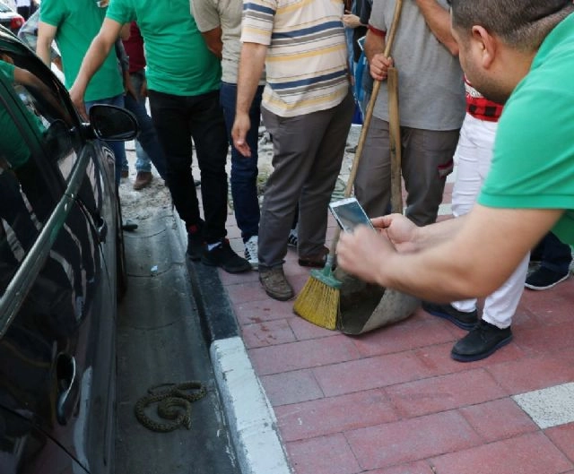 Aykut YeniçağMANİSA - Manisa'da şehrin en işlek caddesinde aniden ortaya çıkan yılanı cep telefonuyla görüntülemek isteyen vatandaşlar birbirleriyle yarışırken, yılanı kutuya koyan korkusuz bir vatandaş ise evde beslemek istediğini söyledi. Manisa'nın Şehzadeler ilçesine bağlı 1. Anafartalar Mahallesi'nde henüz nereden geldiği belli olmayan bir yılan vatandaşların ilgi odağı oldu. Sokağın ortasında sersemlemiş halde duran yılanı cep telefonuyla görüntülemek isteyen vatandaşlar birbirleriyle yarıştı. Yaklaşık 1,5 metre boyundaki yılan vatandaşların ilgi odağı oldu. Vatandaşlar zehirli olup olmadığı bilinmeyen yılana çok fazla yaklaşarak hayatlarını hiçe saydı. Bir süre hareketsiz yerde yatan yılanı Manisa Şehzadeler Belediyesi temizlik işçisi elindeki süpürgeyle iterek bir vatandaş tarafından tutulan kutuya koydu. Yılanı kutuya koyarak evin çatısında beslemek istediğini ve hafta 1 fare vereceğini söyleyen vatandaşa bir basın mensubunun "Haftada 1 fare yeter mi ona?" sorusu üzerine "Oruç tutsun" cevabı verdi.MANİSA'YA ÖZGÜ ZEHİRSİZ YILANOrman ve Su İşleri 4'üncü Bölge Müdürlüğü Manisa İl Şube Müdürü Uğur Bayil, görülen yılanla ilgili ekiplerin hemen çalışma başlattıklarını söyledi. Yılanın Manisa'ya özgü sarı yılan olarak bilinen zehirsiz bir tür olduğunu belirten Yılanın muhtemelen aç kalarak av aramak için şehir içine kadar gelmiş olabileceğini belirten Bayil, müdürlük olarak yılanın bulunduğu yerden alınarak yeniden doğaya bırakılacağını söyledi.