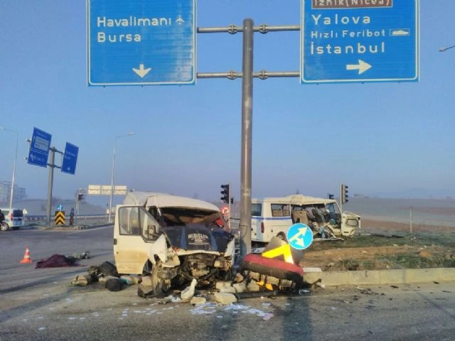 Bursa'da bir seyahat şirketine ait servis ile Suriyeli işçileri taşıyan minibüs çarpıştı. Kazada 3 kişi ölürken, 32 kişi yaralandı.