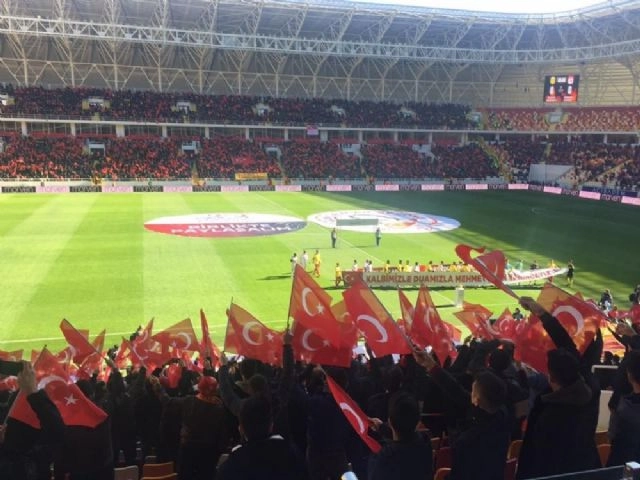 Malatya Büyükşehir Belediyesi, Süper Lig'in 19. haftasında Malatya Stadyumu'nda oynanan Evkur Yeni Malatyaspor-Demir Grup Sivasspor müsabakasını izlemeye gelen taraftarlara Türk Bayrağı dağıttı. Afrin'de yürütülmekte olan Zeytin Dalı Harekatı'na destek vermek için yapılan organizasyonda, stada gelen yaklaşık 11 bin 500 taraftara ay yıldız bayrak dağıtıldı.Malatya Büyükşehir Belediyesi tarafından yapılan açıklamada, Afrin Harekatı'na ve görev yapan Mehmetçiğe destek olmak için Evkur Yeni Malatyaspor - Demir Grup Sivasspor müsabakasını izlemeye gelen taraftarlara Türk Bayrağı dağıtıldığı ifade edildi.27 bin 44 kapasiteli stadyum, dağıtılan bayraklarla kırmızı beyaza bürünürken, Malatyalı taraftarlar müsabaka esnasında sık sık Afrin Harekatı ve görev yapan Mehmetçiklerimize tezahüratla destek verdiler.(Mehmet Türel / İHA)