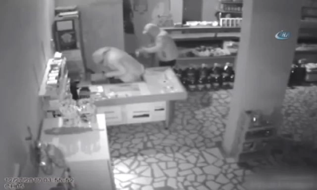 İstanbul Çekmeköy'de kapısını levye ve keski ile açtıkları dükkandan sigara çalan hırsızlar güvenlik kamerasına yakalandı. Olay, geçtiğimiz aylarda Çekmeköy'de bir dükkanda meydana geldi. Edinilen bilgilere göre, bir dükkana girmeye çalışan 2 hırsız, dükkanın kilidini levye ve keskiyle kırmaya çalıştı. Uzun uğraşlar sonunda kilidi kırmayı başaran hırsızlar, içeriye girip kasanın arkasında bulunan sigaraları ve bir adet laptopu alıp kayıplara karıştı. Hırsızların kapıyı açarken harcadığı uzun çaba ve hırsızlık anları saniye saniye güvenlik kamerasına yansıdı. Görüntülerde, iki hırsızın dükkanın kapısını levye ve keskiyle açmaya çalıştığı görülüyor. Uzun uğraşlar sonunda kilidi kıran hırsızlar içeri girip kasanın arka tarafındaki sigaraları ve masanın üstünde duran laptopu alıp kayıplara karışıyor.