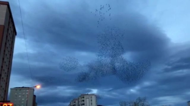 İstanbul Beylikdüzü semalarında binlerce sığırcık kuşunun dansı, görenleri hayran bıraktı. Vatandaşlar bu görsel şöleni cep telefonlarıyla görüntüledi.
