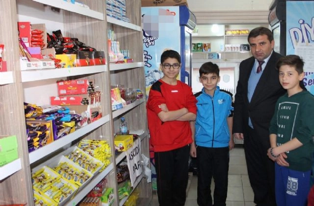 Siirt'te Alparslan Ortaokulunda eğitim gören bir grup öğrenci, harçlıklarından artan parayla kantinden yiyecek alıp raflara koyarak, maddi durumu düşük olan öğrencilerin bundan faydalanmasını sağlıyor.