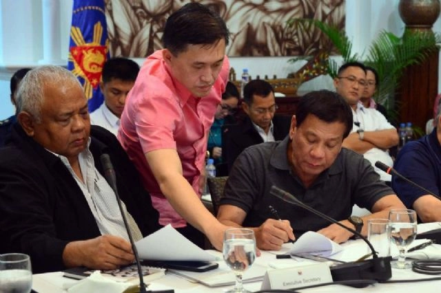 Filipinler Devlet Başkanı Rodrigo Duterte, sıkı yönetim yasasını imzaladı. Filipinler Devlet Başkanı Rodrigo Duterte, Mindanao kentinde yürürlükteki ihzar müzekkeresini askıya alarak kongreye sunduğu sıkı yönetim yasasını imzaladı. Yasayı, Meclis Başkanı Pantaleon Alvarez ve Senato Başkanı Aquilino Pimentel III onayladı.(Jo Reyes /İHA)