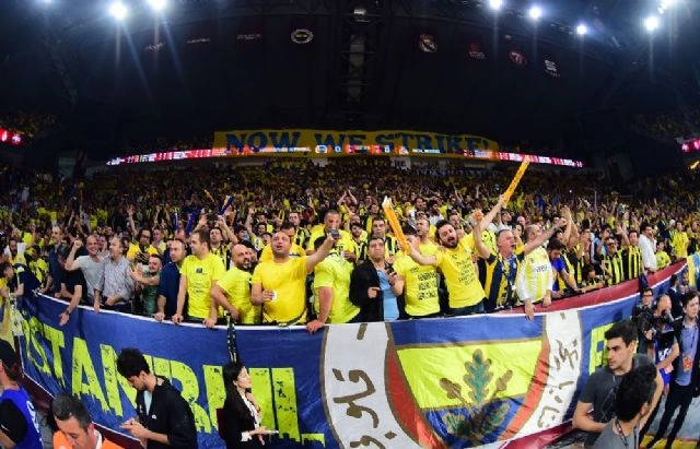 Fenerbahçe'nin Real Madrid ile oynadığı maçta taraftarlar salonun yüzde 90'nını doldurdu. THY Euroleagu Final-Four'da ikinci maçta Fenerbahçe, Real Madrid ile karşı karşıya geldi. Mücadeleden galip ayrılan sarı-lacivertliler finale yükseldi. Bu önemli maçta Fenerbahçeli taraftarlar, takımını yalnız bırakmadı. Günün ilk maçı olan CSKA Moskova-Olympiakos maçından salona gelen sarı-lacivertli taraftarlar, Fenerbahçe'nin karşılaşmasının başlamasıyla birlikte Sinan Erdem Spor Salonu'nu şölen havasına çevirdi. Bir dakika bile susmayan taraftarlar, galibiyetin mimarlarından oldu.(Oğuzhan Ort /İHA)