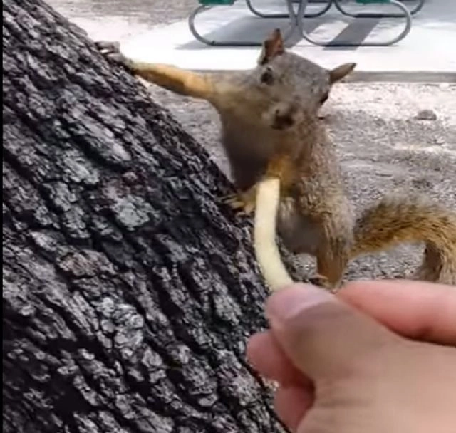 Sincabı beslemek isteyen adam, az daha parmağından oluyordu. Küçük hayvana kızarmış patates veren adam, ret cevabını kabul etmedi. Israrla hayvandan patatesi yemesini isteyince de sincap parmağını ısırdı. Adam parmağından yaralanırken, tüm yaşananları da kameraya almayı ihmal etmedi.