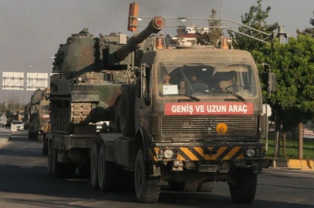 Suriye sınırına sıfır noktada bulunan Kilis'te, Afrin bölgesinin karşısındaki hudut karakollarına topçu bataryası sevk edildi. Suriye'nin Halep kentine bağlı Afrin ilçesinin karşısında bulunan Kilis ve Hatay'da sınıra askeri sevkiyat sürüyor. Elbeyli ilçesinden yola çıkan, içerisinde fırtına obüs toplarının da bulunduğu 7 araçlık topçu bataryası kente ulaştı. Tırların üzerine konulan fırtına obüsleri, terör örgütü PKK'nın Suriye'deki uzantısı PYD/YPG kontrolündeki bölgelerin Türkiye tarafındaki hudut karakollarına sevk edildi. Fırtına obüslerinin 3'üncü Hudut Tabur Komutanlığına bağlı sınır birlikleri ile Kilis-Hatay sınırına konuşlandırıldığı bildirildi. Kilis-Hatay sınırına askeri sevkiyatın peyderpey sürdüğü belirtildi.(Mehmet Ali Dağ / İHA)