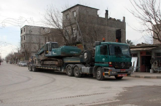 Kilis'in Elbeyli ilçesinde ve sınır hattındaki askeri hareketlilik sürerken, iş makineleri Suriye'ye gönderildi.