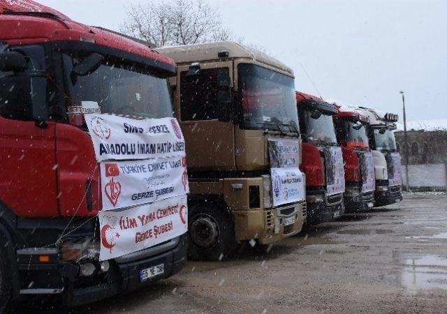 Sinop'ta düzenlenen 'Halep'e Yol Açın' kampanyası kapsamında toplanan 5 tır yardım Halep'e uğurlandı.