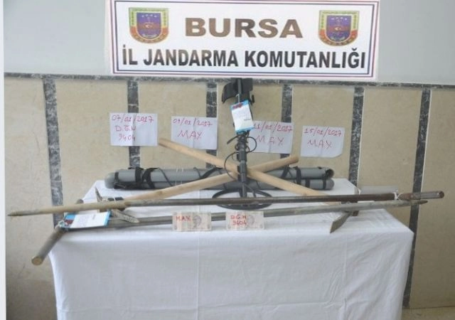 Bursa'da SİT alanında kaçak kazı yapan 2 kardeş tutuklandı.Bursa İl Jandarma ve İznik İlçe Jandarma Komutanlığı ekipleri, yaptıkları istihbarat çalışmaları neticesinde İznik ilçesi Hisardere Mahallesi'nde SİT alanında kaçak kazı yapıldığı istihbaratına ulaştı. Bunun üzerine saat 02.00 sıralarında olay yerine giden ekipler, kaçak kazı yapan 2 şahsı gözaltına aldı. Yapılan incelemelerde 2 adet dedektör, kazma, yer altında malzeme olup olmadığını kontrol etmek için kullanılan 2 adet şişleme aleti ele geçirildi. 2 kardeşin üzerinde yapılan aramada ise izinsiz kazı sonucu elde edecekleri tarihi eseri İstanbul'da satacakları şahsın malzemenin gerçek olup olmadığından emin olmak için malzemenin önünde resim çektirilmesini istediği kağıt ve para üzerine yazılmış çeşitli şifrelerin yazılı olduğu notlar ele geçirildi. Şahısların bu şifreleri o bölgede lahit olduğunu ispatlamak için ve satıcıya yerinde satmak için kullandıkları belirlendi. Kağıda yazılan şifreler sayesinde alıcının lahidin olduğuna inandığı ve satışın sonra yapıldığı öğrenildi.2 kardeş sevk edildiği adli mercilerce tutuklandı.