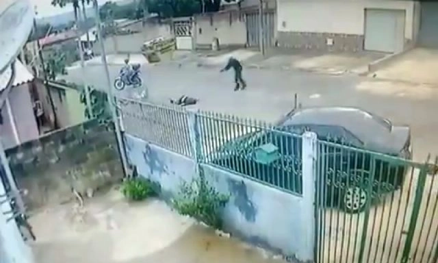 Brezilya'da sokak ortasında işlenen cinayet güvenlik kamerasınca görüntülendi.Motosikletiyle bir kişiye yaklaşan şahıs, silahını çıkardı ve art arda ateşledi. Kurşunların hedefi olan kişi yere yığılırken, saldırgan öldüğünden emin olmak için kurşun yağdırmaya devam etti. Talihsiz adam olay yerinde can verirken, saldırgansa kaçtı. Olay sırasında saldırıya uğrayan kişinin yanındaki şahsın yaşadığı panik ve kaçışı da güvenlik kamerasına yansıdı.