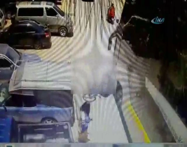 Tayland'ta korkunç bir kaza gerçekleşti. Yayaya çarptıktan sonra yere düşen talihsiz bisikletlinin üzerinden otobüs geçti. Boynu tekerleğin altında kalan sürücü bir süre sonra kafasını kurtarırken, o anlara şahitlik edenler dehşete kapıldı. Hastaneye kaldırılan adamın durumu ise bilinmiyor.