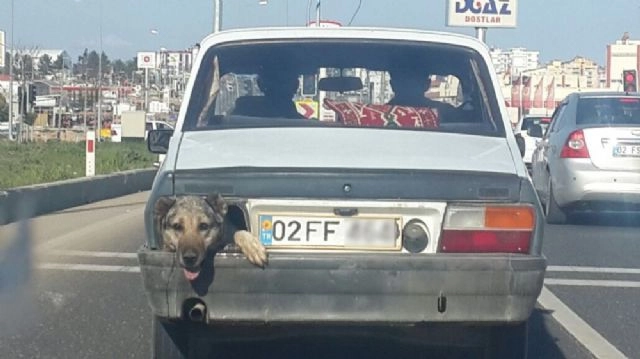Adıyaman'da, seyir halinde olan bir otomobilin stop lambasından dışarıya çıkan köpek kafası görenleri hayrete düşürdü. Gölbaşı istikametinden Adıyaman istikametine gelmekte olan bir otomobilin stop lambası yerinde köpek kafasının olduğunu fark eden araç sürücüleri durumu fotoğrafladı. Otomobil sürücüsü tarafından bagaja konulan köpeğin havasız kalmaması için sürücü tarafından sol stop lambası söküldü. Stop lambasının sökülmesiyle birlikte bagaja konulan köpek arada kafasını dışarıya çıkartarak hem etrafı izledi hem de hava aldı.Stop lambaları yerine köpek kafasını gören sürücüler durumu fotoğraflarken, bagajında köpek bulunan otomobil bir süre sonra gözlerden kayboldu.(Cihan Kizir /İHA)