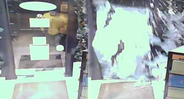 Nişantaşı'nda kaçmaya çalışırken polis ekipleri ile yaşadığı arbedede bacağından vurulan hırsızın, o gece girdiği kırtasiyenin cam kapısını vücuduyla kırdığı an güvenlik kameralarına yansıdı.