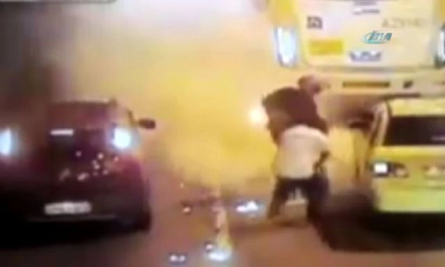 Devrilen motosikletin kıvılcımları sürücüyü yaktı. Alevler içinde kalan motosikletli böyle söndürüldü. İnanılmaz kaza Brezilya'da gerçekleşti. Trafikte ilerleyen motosikletli bir anda aracının direksiyon hakimiyetini kaybedince yere düşüp sürüklenmeye başladı. Sürüklenmenin etkisiyle alev alan motosikletten sıçrayan kıvılcımlar, sürücüyü tutuşturdu. Can havliyle koşan şahsın yardımına bir otobüs şoförü yetişti. Yangın söndürme tüpüyle söndürülen yaralı sürücü hastaneye kaldırılırken, canını hiçe sayan otobüs şoförü bu kez ateş topuna dönen motosiklete müdahale etti. Neyse ki şoföre bir şey olmazken, o anlar kameraya yansıdı.