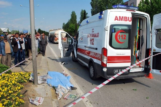 Manisa'nın Salihli ilçesinde tanker ile motosikletin çarpışması sonucu meydana gelen kazada motosiklet sürücüsü hayatını kaybetti. Kaza, E-96 karayolu Akhisar ışıklı kavşakta meydana geldi. Edinilen bilgiye göre, İzmir yönünden Kula yönüne gitmekte olan Hakan A. (23) yönetimindeki 42 YE 649 plakalı tanker ile aynı yöne gitmekte olan Hüseyin Çetin (61) yönetimindeki 45 LG 710 plakalı motosiklet kavşakta çarpıştı. Kazada motosiklet sürücü Çetin, olay yerinde feci şekilde hayatını kaybetti. 2 çocuk babası Çetin'in cenazesi Salihli Devlet Hastanesi morguna kaldırılırken, tanker sürücüsü gözaltına alındı. Polis kaza ile ilgili çalışma başlattı.(Behzat Akcan /İHA)