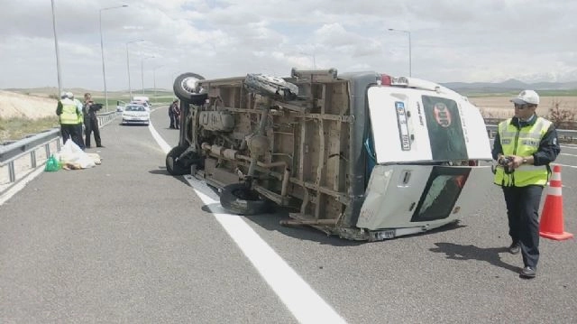 Konya'nın Ereğli ilçesinde tarım işçilerini taşıyan minibüsün devrilmesi sonucu 13 kişi yaralandı. Kaza, Adana-Aksaray Karayolu Ereğli kavşağı yakınlarında meydana geldi. Edinilen bilgiye göre, Şanlıurfa'dan Konya'ya giden ve tarım işçileri taşıdığı öğrenilen Servet K. idaresindeki 63 S 1061 plakalı minibüs lastiğinin patlaması sonucu kontrolden çıkarak devrildi. Kaza sonrası minibüste sürücü Servet K. ile birlikte araçta bulunan toplam 13 kişi yaralandı. Yaralılar olay yerine sevk edilen 112 Acil Servis ambulanslarıyla Ereğli ve Niğde'deki çeşitli hastanelere kaldırılarak tedavi altına alındı. Kazadan sonra arkadan gelen başka bir araçtaki tarım işçileri de, kaza yapan minibüste bulunan malzemeleri dışarı çıkardı. Kazayla ilgili soruşturma sürüyor.(Özcan Saraç/İHA)