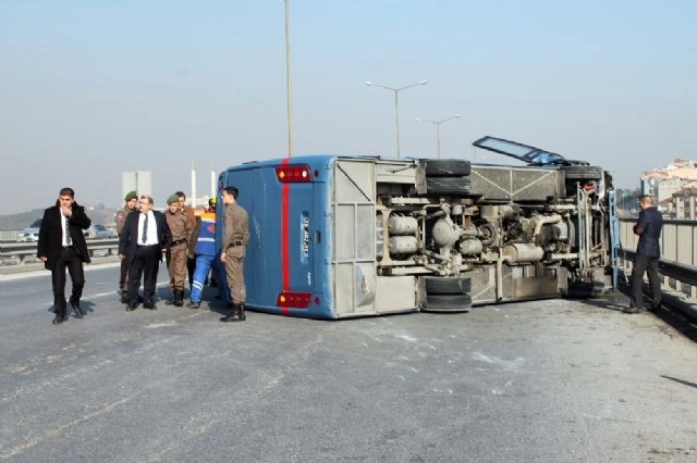 İstanbul Bağcılar TEM otoyolunda bir cezaevi aracı devrildi. Aracın yan yattığı kazada yaralanan olmazken, kaza nedeniyle yol 2 şeride düşürüldü.