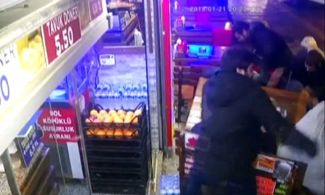 İstanbul Kadıköy'de "Zeytin Dalı" harekatını protesto eden bir grup, kendilerine tepki gösteren 3 kişiyi tekme tokat dövdü. Olayı soruşturan Terörle Mücadele polisi, 5 zanlıyı gözaltına alırken, Kadıköy'de yaşanan saldırı da güvenlik kameralarına yansıdı. Edinilen bilgilere göre, İstanbul Emniyet Müdürlüğü Terörle Mücadele Şube ekipleri, TSK'nın Afrin'e yönelik düzenlediği "Zeytin Dalı" harekatını protesto ederek sosyal medya üzerinden örgütlenen bir grup eylemci, 21 Ocak Pazar günü Kadıköy'de eylem yaptı. Devlet aleyhine slogan atan gruba kafede oturan bazı gençler tepki gösterdi. Kendilerine tepki gösteren 3 kişiyi kafede oturdukları sırada tekme tokat döven Y.Y., A.T.T., M.Y., B.A. ve A.S. adlı 5 saldırgan bugün terör polisince düzenlenen operasyonla yakalandı. Terör yandaşlarının kafedeki gençleri tekme tokat dövmesi güvenlik kameralarına da yansıdı. Görüntülerde birkaç genç, kafede oturarak sohbet ediyor. Bir süre sonra eylemciler gençlerin yanlarına geliyor. Bir süre yaşanan tartışmadan sonra saldırganlar oturan gençleri tekme tokat dövüyor. Ayrıca yine sosyal medya üzerinden örgütlenerek terör propagandası yaptığı tespit edilen DKP/BÖG adlı örgüte mensup U.B.Ç., ve A.E.E. adlı 2 zanlı İstanbul ve İzmir'de düzenlenen operasyonla yakalanarak gözaltına alındı. Gözaltına alınan toplam 7 kişi, İstanbul Emniyet Müdürlüğü Terörle Mücadele Şubesi'ne götürüldü. (Sadık Kahraman /İHA)