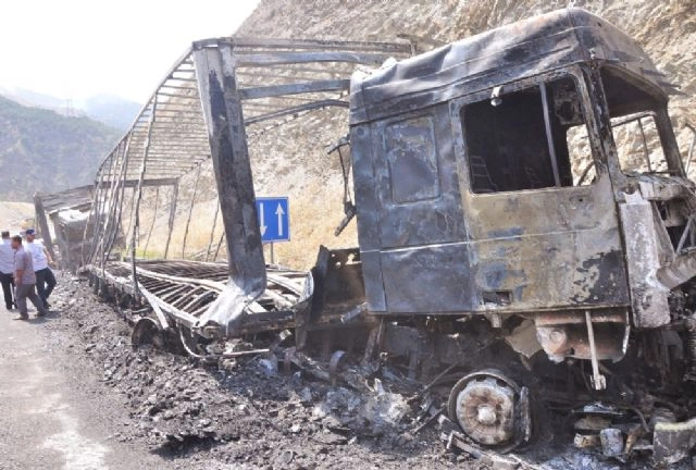 Van'ın Çaldıran ile Ağrı'nın Doğubayazıt ilçeleri arasındaki Tendürek bölgesinde yolu kesen bir grup PKK'lı terörist, bazı araçları ateşe verdi.