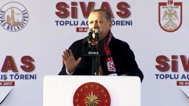 Cumhurbaşkanı Erdoğan, "Tüm terör odaklarının olduğu yerde, inlerine gireceğiz dedik. Girdik mi? Girdik şükür. Şu anda silahlı kuvvetlerimiz, polisimiz, jandarmamız, güvenlik korucularımız en ücra köşeye kadar, onlar kaçıyor biz kovalıyoruz. Bitene kadar kovalayacağız" dedi.Cumhurbaşkanı Recep Tayyip Erdoğan, Sivas'ta AK Parti İl Başkanlığı Kongresi'nin ardından 821 milyon lira değerinde olan 53 eser ve hizmetin resmi açılış törenine katıldı. Burada halka hitap eden Erdoğan, konuşmasına "Yiğido" isimli şiiri okuyarak başladı. Gün içerisinde oynanacak olan Sivasspor-Başakşehir maçına değinen Erdoğan, "Biraz sonra Sivasspor-Başakşehir maçı var. Ne dileyim. Yukarı tükürsem bıyık, aşağı tükürsem sakal. Başakşehir'in kurucu başkanıyım. Sivas'ta canım ciğerim. Şunu dersek iyi olur. İyi oynayan kazansın" dedi.SALONUN ADINI "TAHA AKGÜL" OLARAK AÇIKLADIErdoğan, konuşmasında toplu açılışta açılışı yapılacak olan yeni kapalı spor salonunun adını da belirledi. Erdoğan, "Kapalı spor salonun 118 milyon TL'lik bu yatırıma sahip çıkın. Şimdi bu kapalı spor salonumuzun adını da buradan ilan ediyorum. Gururumuz. Kim olabilir. Referandumu yaptık. Kamuoyu araştırmamızı yaptık. Çıkan sonuç şu, kapalı spor salonumuzun adı Taha Akgül" diye konuştu. Milli güreşçi Taha Akgül'ü yanına çağıran Erdoğan, ondan yeni olimpiyat ve dünya şampiyonlukları beklediğini belirtti."GECİKMENİN HESABINI BİZZAT SORACAĞIM"Erdoğan konuşmasında, Ankara-Sivas yüksek hızlı tren yolu projesindeki gecikmeden dolayı bizzat hesap soracağını belirtip, "Bu güne kadar Sivas'a yaptığımız yatırımların toplam bedeli 20 katrilyon. Ankara-Sivas yüksek hızlı demir yolu projesinde teknik sebeplerden dolayı gecikmemiz var. Ama aşacağız. Projeyi adım adım takip ediyorum. Bu projede daha fazla gecikmeye yol açanlardan da bunun hesabını bizzat soracağım. Bu tren hattı Sivas'ta kesilmeyecek. Erzincan, Erzurum ve Kars'a bağlanacak. Oradan da Pekin'e demir ipek yoluna kadar uzanacak" ifadelerini kullandı."TERÖRÜ BİTENE KADAR KOVALAYACAĞIZ"Cumhurbaşkanı Recep Tayyip Erdoğan konuşmasında teröre değinerek, bitene kadar terörü kovalayacaklarının altını çizdi. Erdoğan, "780 bin kilometrekare ile tek vatanız. Vatanımızı parçalayamazlar. Birileri var ya; paralel yapıymış, şu yapılmış, bu yapıymış. Yok PKK'ymış, şuymuş, buymuş. Ne olursanız olun. Cudi'de, Gabar'da, Kandil'de, Beslerderesi'nde, tüm terör odaklarının olduğu yerde, inlerine gireceğiz dedik. Girdik mi? Girdik şükür. Şu anda silahlı kuvvetlerimiz, polisimiz, jandarmamız, güvenlik korucularımız en ücra köşeye kadar, onlar kaçıyor biz kovalıyoruz. Bitene kadar kovalayacağız. Halkımızın huzurunu yok edemeyecekler, milletimizin refahını yok edemeyecekler. Onun için yeter ki birbirimize inanalım. Biz birbirimizi makam ve para için değil, biz birbirimizi yaratandan ötürü seviyoruz. Bizim Türkiye Cumhuriyeti devletinden başka devletimiz yoktur. Orada bütünleşti, orada toplandık. Mesele budur" şeklinde konuştu."TRUMP'UN -BEN YAPTIM OLDU- DEMESİ İLE OLMUYOR"Erdoğan konuşmasında Kudüs konusuna değinerek, Trump'ın "Ben yaptım oldu" demesi ile olmayacağını belirtip, "Kudüs bizim kırmızı çizgimizdir. Kudüs üzerindeki oyunlara asla müsaade etmeyeceğiz. ABD'nin Kudüs'ü İsrail'in başkenti olarak tanıma ve büyükelçiliğini taşıma kararı bunun son örneğidir. İslam dünyasının Kudüs hakkındaki hassasiyetinin bilinmesine rağmen alınan bu karar, bölgede zaten sürekli örselenen başına, huzura karşı bir kışkırtmadır. 1980 yılında 478 sayılı BM Güvenlik Konseyinin aldığı ve altında ABD'nin de imzası olan belgeye göre İsrail'in Kudüs'ü başkent ilan etme kararı geçersizdir. Ey Trump sen 1980'de 478 sayılı bu kararı tek başına nasıl yok farz ediyorsun. Senin böyle bir yetkin var mı ? Sen kendin tek başına bir emlak mı alıp satıyorsun. Büyük bir devlete yakışan barışı sağlamaktır. Karmaşa çıkartmak değildir. Bu bölgedeki hassasiyetler bilindiği halde nasıl oluyor da böyle bir şey yapıyorsun. 1947'den itibaren zaten Filistin hep işgale uğramıştır. İsrail bir işgalci devlettir. Bir terör devletidir. Ey Trump senin düştüğün bu yanlışa biz düşemeyiz. Biz beklerdik ki bu düşünceni önce bizimle paylaş. Şu anda Recep Tayyip Erdoğan, Türkiye İslam İşbirliği Teşkilatı'nın dönem başkanı. Bizimle bunu anlaşman gerekiyordu. Hiç paylaşmadan böle bir adım atamazsın. Ben günlerdir hem İslam hem de Hristiyan dünyasının ileri gelenlerini tek tek aradım. Şimdi Çarşamba günü İsanbul'da bir zirve yapıyoruz. Burada bir sonuç bildirgesi açıklayacağız. Yani Trump ben yaptım oldu demesi ile olmuyor. İstediğin kadar sen oraya büyükelçiliğini taşı. İstediğin kadar İsrail orayı başkent ilan etsin. Ne olur biliyor musunuz? Sadece İsrail yaptıkları ile kalır. ABD de aldığı bu hukuksuz karar ile baş başa kalır. Çünkü bu hukuksuz bir adımdır. Hukuk tanımaz bir adımı bizim tanımamız mümkün değil" şeklinde konuştu.