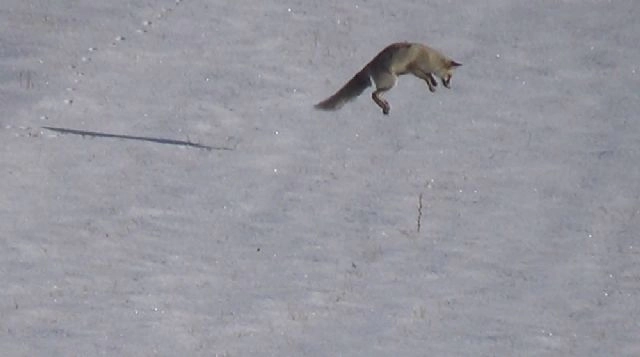 Doğu Anadolu Bölgesinde etkili olan soğuk ve yağışlı hava yaban hayatını da olumsuz etkiledi. Karın yağması ve hava sıcaklığının sıfırın altında 14 dereceye kadar düştüğü Sarıkamış'ta, tilkilerin karla kaplı tarladaki fare avı kameralara yansıdı. Kar yağışı ve sıcaklığın sıfırın altında 14 dereceye kadar düştüğü Kars'ta, yaban hayvanları da yiyecek bulmakta zorlanıyor.Kar altında fare avına çıkan tilkiler, yaklaşık 30 saniye hiç kıpırdamadan avının hareketini takip ediyor ve bir anda yaklaşık 1 metre zıplayarak kafasını kara gömüyor. Tilkiler burada yakaladıkları fareleri yiyerek karnını doyurmaya çalışıyor.(Alper Yıldırım/İHA)