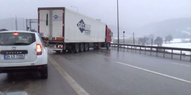 TEM otoyolunun Bolu Dağı Tüneli İstanbul istikametinde su damacanası taşıyan tırın bariyerlere çarparak savrulması sonrasında ulaşım 30 dakika kapalı kaldı. Kaza sonrasında su damacanaları yol savruldu. Edinilen bilgiye göre, kaza saat 10:25'de meydana geldi. İstanbul istikametine giden Pevrul Atak yönetimindeki 06 DR 6134 plakalı su damacanası yüklü tır, hafif şekilde devam eden kar yağışı sonrasında direksiyon hakimiyetini kaybederek ilk önce bariyerlere çarptı ardından yol ortasına savruldu. Araçta bulunan damacanalar yola savruldu. Tır sürücüsü Pevrul Atak kazadan yara almadan kurtulurken, ulaşım 30 dakika kapalı kaldı. Yolda uzun araç kuyrukları oluştu. Karayolları ve itfaiye ekipleri yolu temizlemesinin ardından trafik ulaşıma açıldı.