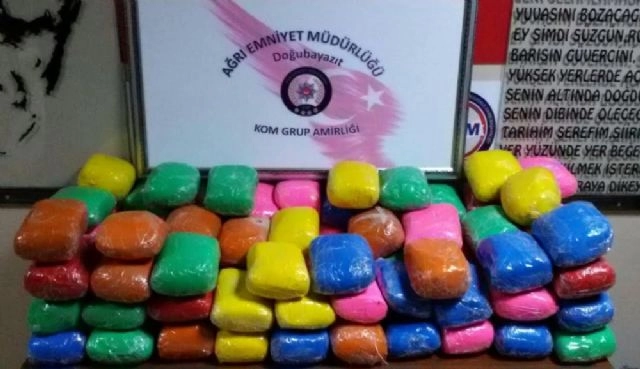 Ağrı'nın Doğubayazıt ilçesinde alınan istihbarat üzerine harekete geçen ekipler bir tırda yaptıkları aramada 107 kilo 960 gram eroin ele geçirdi.Ağrı Valiliği tarafından yapılan açıklamaya göre, Doğubayazıt Narkotik Suçlarla Mücadele Büro Amirliği ekiplerince uyuşturucu madde ticaretini önlemeye yönelik yapılan çalışmalar kapsamında tır içerisine uyuşturucu madde yüklenerek Batı ülkelerine uyuşturucu madde sevk edileceği tespit edildiği bildirildi. Yapılan operasyon neticesinde bir tır içerisinde yapılan aramada, 5 beş adet çuvalda 99 paket içerisinde 107 kilo 960 gram eroin ele geçirildiği açıklandı. Olayla ilgili İran uyruklu G.A isimli şüphelinin gözaltına alındığı ifade edildi.(Ahmet Genç/İHA)
