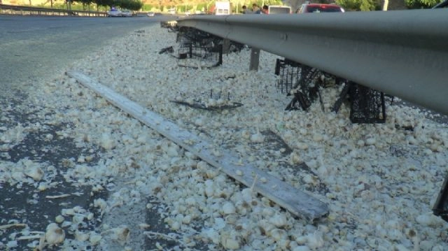 Şanlıurfa'da bariyerlere çarptıktan sonra devrilen tırdaki 23 ton sarımsak yola döküldü.