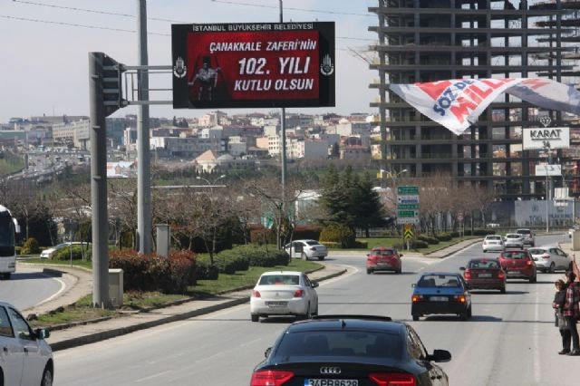 İstanbul Büyükşehir Belediyesi'ne ait olan trafik levhalarında, Çanakkale Zaferi unutulmadı. Trafikte sürücülere yol durumunu gösteren levhalarda 'Çanakkale Zaferi'nin 102. Yılı Kutlu Olsun' mesajına yer verildi.