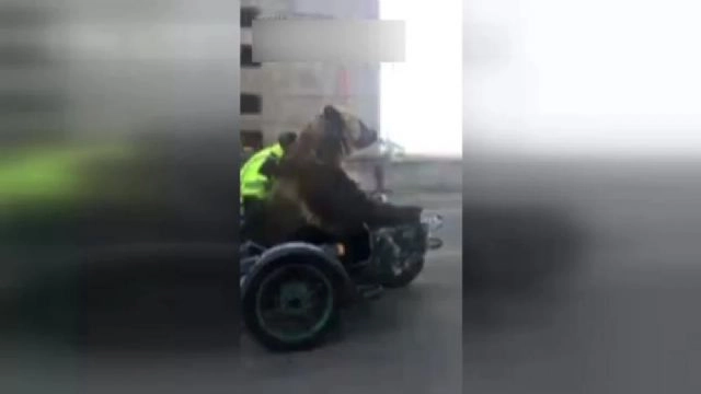 Seyir halinde olan motosikletteki ayıyı görenler gözlerine inanamadı.