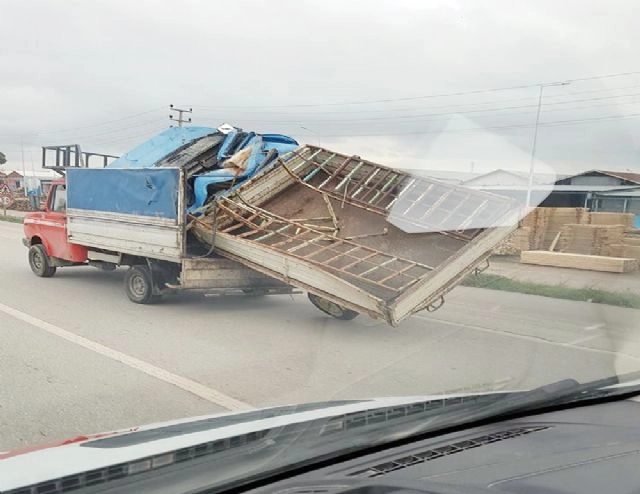 Adana'da bir ticari aracın kaza yapmış başka bir ticari aracı kasasında güvenlik önlemi almadan taşıması tehlikeye davetiye çıkardı. D-400 karayolunda bir ticari aracın kaza yapmış başka bir ticari aracı kasasında güvenlik önlemi almadan taşıması trafikte tehlikeli anlara sebep oldu. Yoldan geçen diğer sürücüler tarafından çekilen görüntüler sosyal medyada paylaşılınca araç sürücüsüne tepki yağdı. Çekilen görüntülerde en sağ şeritte giden ticari araç sürücüsünün trafiği tehlikeye sokarak gittiği görülürken, video için sosyal medyada 'Kazalı araç şans eseri yola düşmemiş' yorumları yapıldı. (Umutcan İşledici /İHA)