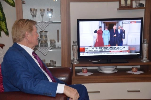 Dünya, ABD'nin yeni Başkanının görevi devralmasına dikkat kesilmişken, Donald Trump'a benzerliği ile gündeme gelen, Abdullah Topçu da benzerinin devir teslim törenini TV'den takip etti.