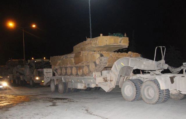 Türk Silahlı Kuvvetleri (TSK) tarafından başlatılan "Zeytin Dalı Harekatı" kapsamında Türk tankları Öncüpınar Sınır Kapısı üzerinden Suriye'ye geçiyor. Akşam saatlerinden itibaren Kilis'e gelen tanklar ile fırtına obüs topları, Kilis'in Öncüpınar Sınır kapısı üzerinden geniş güvenlik önlemleri altında Suriye'ye geçiş yapıyor. Peyderpey tankların Suriye'ye geçişleri sürüyor.(Mehmet Ali Dağ/İHA)