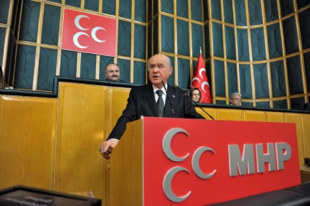 MHP Genel Başkanı Devlet Bahçeli, "Kandil ve Sincar'dan sonra PKK'nın Kerkük'e yuvalanması yalnızca Irak, yalnızca bölge için değil, Türkiye içinde milli güvenlik meselesidir. Şu andaki durum ne olursa olsun, Barzani-PKK cinayet ittifakında hedef Türkmen yurtlarıdır" dedi. MHP Genel Başkanı Bahçeli, partisinin grup toplantısında açıklamalarda bulundu. Bahçeli, yaptığı konuşmada Irak'taki son gelişmelere değinerek, "Biz Barzani'ye Mehmetçik katili derken boş konuşmuyorduk. Biz ha peşmerge ha PKK derken de abartmıyor, gerçekleri saptırmıyorduk. Kerkük'te PKK'nın ne işi vardır. Bu neyin mesajı, hangi alçak senaryonun hazırlığıdır? PKK'nın Kerkük'e intikalinin önünü kimler açmış, buna hangi güçler çanak tutmuştur? Oynanan oyun şiddetlidir ve büyüktür. Kandil ve Sincar'dan sonra PKK'nın Kerkük'e yuvalanması yalnızca Irak, yalnızca bölge için değil, Türkiye içinde milli güvenlik meselesidir. Şu andaki durum ne olursa olsun, Barzani-PKK cinayet ittifakında hedef Türkmen yurtlarıdır. 25 Eylül referandumunun gayesi daha da netleşmiş, taraf ve emelleri daha da gün yüzüne çıkmıştır. Suriye'nin kuzeyindeki sözde üç kantona eklemlenmek isteyen, 25 Eylül'ü bu kapsamda ara durak gören ve PKK'nın hain hedefleriyle Kürdistan nöbetine giren Barzani, tam bir düşman, tam bir rezildir" açıklamasında bulundu. (İlker Turak / İHA)