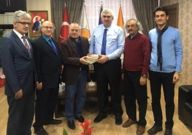 AK Parti Erzurum İl Başkanlığına getirilen Mehmet Emin Öz'e tebrik ziyaretleri devam ediyor.Göreve başladığı andan itibaren binlerce kişinin ziyaret ettiği Başkan Öz'e Erzurum'daki Sivil Toplum Kuruluşları da hayırlı olsun ziyaretlerini sürdürüyor.Türkiye Yazarlar Birliği Erzurum Şube Yönetimi, Başkan M.Hanefi İspirli ile birlikte Mehmet Emin Öz'e hayırlı olsun ziyaretinde bulundu.Yönetim Kurulu Üyeleri; Yusuf Kotan, İsmail Bingöl, Ömer Özden ve Reşat Coşkun kendi kitaplarını hediye ettikleri ziyarette Ak Parti İl Başkanı Mehmet Emin Öz'e yeni görevinde başarı dilediler.TYB Erzurum Şube Başkanı İspirli; "Erzurum siyasetinde, böyle görevlerde bir kültür-sanat insanını görmek bizleri mutlu etti. İnsana, siyasete bir kültür adamının eli ile, yüreği ile dokunacak olması Erzurum adına büyük bir kazanım. İnşallah bu diğer siyasi partilerimizde ve değişik organlarında da olur. Çünkü okuyan, yazan, anlatan, tarihi bilen isimlerin siyasette taşıyacakları mesaj da bunlarla ilgili olacaktır" Dedi.Ziyaretten duyduğu memnuniyeti dile getiren Ak Parti İl Başkanı Mehmet Emin Öz; Erzurum'da kendisine gösterilen teveccühten dolayı bütün STK'lara teşekkür etti. Siyasi partilerin en önemli paydaşlarının Sivil Toplum Örgütleri olduğunu hatırlatan Öz, bütün Erzurum'u kucaklama arzularının olduğunu, bunun içinde STK'larla yakın bir mesai içerisinde olacaklarını söyledi.M.Hanefi İspirli, Yusuf Kotan, İsmail Bingöl, Ömer Özden ve Reşat Coşkun'un kendi kitaplarından oluşan seti Başkan Öz'e hediye etmelerinin ardından ziyaret sona erdi.