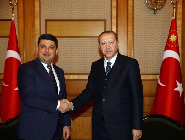 Cumhurbaşkanı Recep Erdoğan, Kiev'de Ukrayna Başbakanı Vladimir Groyman'ı kabul etti.