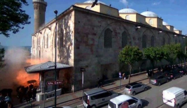Bursa'da 13 kişinin yaralandığı canlı bomba saldırısının 5'inci duruşması yapıldı. Cumhuriyet Savcısı, Ümmü Gülsüm M., Mithat T. ve Emine K. hakkında 13'er kez ağırlaştırılmış müebbet, 1'er kez müebbet ve 15'er yıl hapis cezası, diğer tutuksuz 3 sanık hakkında ise beraat istedi. Ulucami önünde 27 Nisan 2016 tarihinde 13 kişinin yaralandığı canlı bomba saldırısıyla ilgili davanın görülmesine 2. Ağır Ceza Mahkemesinde devam edildi. Duruşmaya tutuklu sanıklar Mithat T. (19), Emine K. (26) ve Ümmü Gülsüm M. (20) ile tutuksuz sanıklar Tuba K. (19), Zekiye Z. (26) ile sanıkların yakınları ve avukatlar katıldı. Duruşmaya ilk defa katılan Bayram A. (34), "Olay tarihinde Ulucami'de namaz kılıyordum. Cam parçası patlamayla benim vücuduma isabet etti. Patlamayla aramda 5 metre mesafe vardı. Şikayetçi değilim" dedi.Cumhuriyet savcısı verdiği mütalaada olayın oluş şeklini, detaylarını, sanıkların davranışlarını anlattı. Cumhuriyet savcısı anlatımının ardından tutuklu 3 sanık Ümmü Gülsüm M., Mithat T. ve Emine K. hakkında 13 kez ağırlaştırılmış müebbet, 1 kez müebbet ve 15'er yıla kadar hapis cezası istedi. Savcı 3 sanığın mala zarar verme ve örgüte silah satma suçlarından beraatını talep etti. Savcı, tutuksuz yargılanan İsa C. (34), Zekiye Z. ve Tuba K.'nın beraatlarını istedi.Mahkeme heyeti, Emine K., Mithat T. ve Ümmü Gülsüm M.'nin tutukluluk hallerinin devamına, avukatların ek savunmalarına duruşma gününe kadar hazırlamalarına karar verip, duruşmayı ileri bir tarihe erteledi.(Ahmet Faruk Çabuk/İHA)