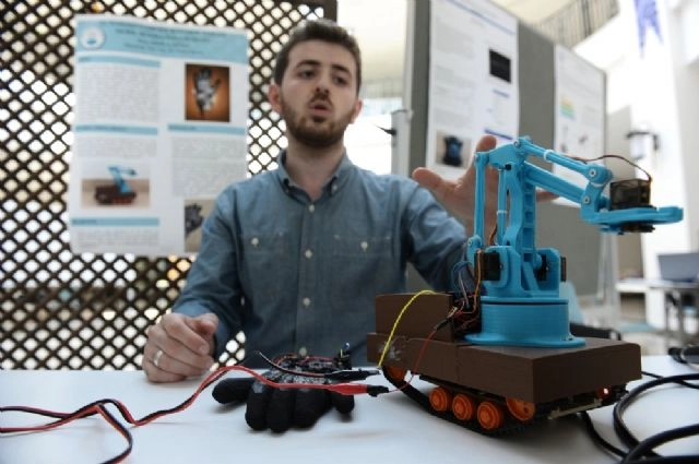 Bursa'da bir üniversite öğrencisi, eldivenle kumanda edilebilen mobil bomba imha aracı yaptı.