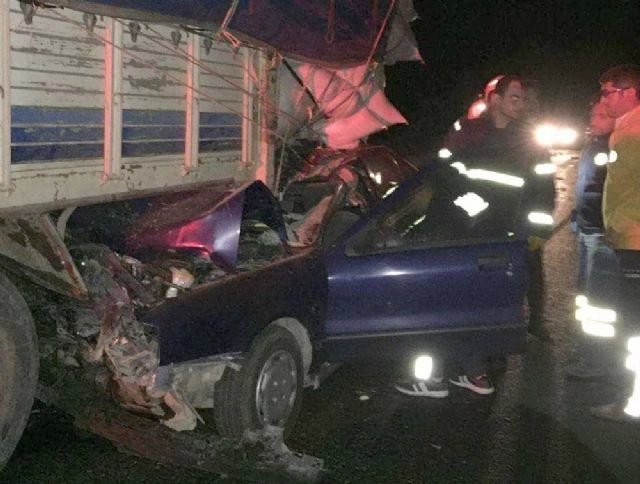 Uşak'ta otomobilin kamyona çarpması sonucu 2 kişi hayatını kaybetti.