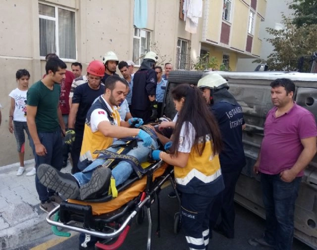 Üsküdar'da süratlı olduğu ileri sürülen bir aracın iki araca çarparak devrilmesi sonucu meydana gelen kazada 1 kişi yaralandı. Kazanın ardından araçta sıkışan sürücü itfaiye erleri tarafından çıkarılırken, kazaya karışan diğer aracın kadın sürücüsü ise kazanın şokunu uzun süre atlatamadı. Cumhuriyet Mahallesi Adem Yavuz Mahallesi içerisinde seyir halinde bulunan Uğurcan Hançar'ın kullandığı 34 HK 2802 plakalı ticari araç, sokak içerisinde seyir halinde bulunan bir araç ile park halindeki bir araca çarptıktan sonra devrildi. Kazada aracın sürücüsü Uğurcan Hançar yaralanırken, direksiyon başında sıkıştı. Yaralı sürücü için olay yerine itfaiye ve ambulans çağrıldı. İhbarın ardından kısa sürede olay yerine gelen itfaiye erleri, Uğurcan Hançar'ı kurtarmak için çalışma başlattı. Bu sırada Uğrucan Hançar'ın kullandığı aracın çarptığı diğer aracın kadın sürücüsü ise şoka girdi. Kazanın etkisi ile aracın içerisinde bir süre bekleyen ve ağlayan kadın sürücü, kameraların görüntü almasından rahatsız olarak olay yerinden uzaklaştı. Yaralı sürücü ise yapılan çalışmaların ardından kurtarılarak ambulansla hastaneye kaldırıldı.Park halindeyken kazaya karışan aracın sürücüsü Tayfun Türel, "Araç sokak içerisinden süratli geldi. Önce bayanın kullandığı araca sonra da benim park halindeki aracıma çarptı. Aracım yerinden sürüklendi" şeklinde konuştu.(Mustafa Esen /İHA)