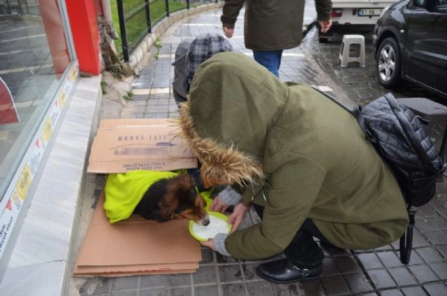 Trabzon'da yol kenarında titreyerek yatan sokak köpeğini battaniye ile sararak ısıtmaya çalıştılar. Trabzon'un Ortahisar ilçesinde bir mobilya mağazası bulunan Firdevs Akyol'un çocukları yol kenarında titreyen sokak köpeğini görünce annelerine haber verdi. Sokak köpeğinin yağmur nedeniyle ıslandığı ve aç olduğunu gören Akyol çocuklarının battaniyesini alarak köpeği ısıtmaya çalıştı. Köpeği battaniye ve kartonlarla birlikte ısıtmaya çalışan vatandaşlar süt alarak karnını da doyurmaya çalıştılar.Herkesin evine önüne bir kulübe yapmasını isteyen yardımsever vatandaş Yekta Eyüpoğlu, "Yoldan geçerken dikkatimi çekti. Üşümesin diye battaniyeye sardık ama fazla bir faydası olmadı. Bu hayvanları böyle dışarı salmak çok üzücü. Herkesin evine önüne bir kulübe yapması gerekiyor en fazla 20 dakikalarını alır. Şuan elimde malzeme olsa burada bile bir kulübe yaparım" dedi.Çocuklarının battaniyesini sokak köpeğine sararak yardım eden Firdevs Eyüpoğlu ise "Çocuklarım yol kenarında gördü. 'Anne köpek ıslanmış gelsene' dediler. Titrediğini görünce çocuğun battaniyesi vardı ona sardım. Hayvanlar için bu bölgede barınak çok sıkıntı. Zaman zaman böyle olaylarla karşılaşabiliyoruz" ifadelerini kullandı.(Bekir Koca - Ozan Köse/İHA)