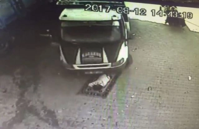 Şanlıurfa'da sıcak havada serinlemek için yere serdiği kilimin üzerinde uyurken, üzerinden kamyonet geçen kişinin görüntüleri güvenlik kamerasına yansıdı.