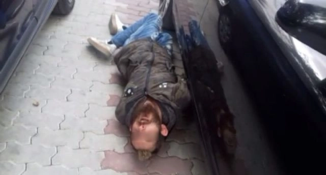 İstanbul Bakırköy'de madde bağımlısı gencin ibretlik görüntüsü kameralara yansıdı. Kendisini iki arabanın arasına atan genç yerde sürünmesi vatandaşların yüreğini sızlattı.
