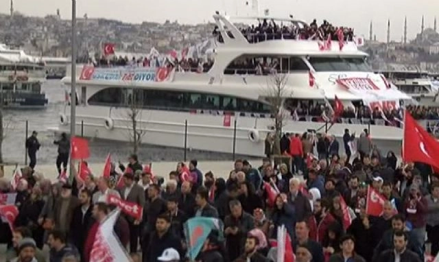 'Büyük İstanbul Mitingi'ne katılmak için deniz yoluyla Yenikapı sahiline gelen vatandaşlar adeta insan seli oluşturdu.