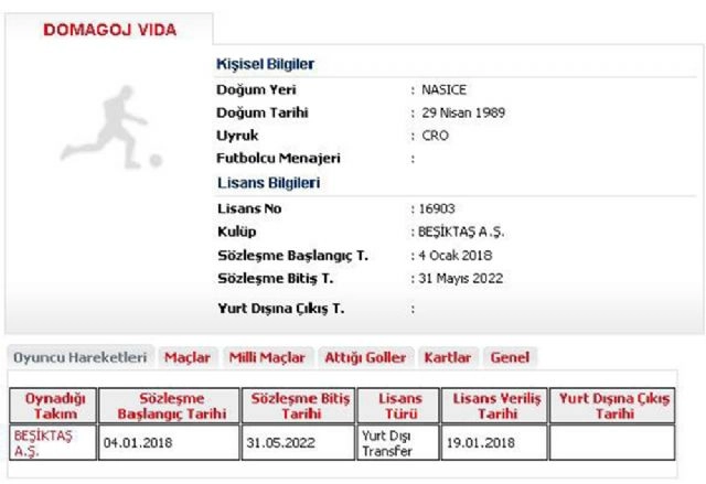 Beşiktaş'ın yeni transferi Domagoj Vida'nın lisansı çıktı. Hırvat stoper, Teknik Direktör Şenol Güneş'in görev vermesi halinde Antalyaspor maçında forma giyebilecek. Beşiktaş'ın devre arası transfer döneminde Dinamo Kiev'den transfer ettiği Domagoj Vida'nın çıktı. İşlemleri yetişmediği için kupada oynanan Osmanlıspor mücadelesinde forma giyemeyen Hırvat oyuncu, Teknik Direktör Şenol Güneş'in uygun görmesi durumunda Süper Lig'in 18. haftasında oynanacak olan Antalyaspor maçında sahadaki yerini alabilecek.Siyah-beyazlılar, Vida ile 4.5 yıllık sözleşme imzalamıştı.