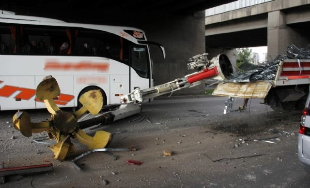 Adana'da köprüye vincin çarpması sonucu 2 kişi ağır yaralanırken, vincin parçalarının çarptığı engelli servisinde bulunan çocuklar ise ölümden döndü.
