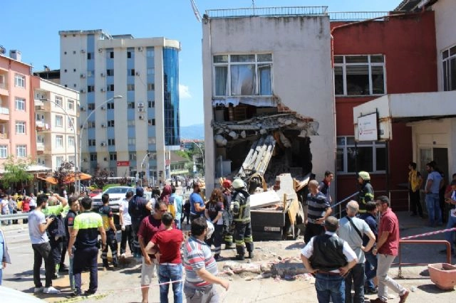 Kocaeli'nin İzmit ilçesinde kasasında vinç sistemi bulunan kamyon, sağlık ocağına daldı. Kazada vinç sürücüsü ölürken, bir kişi yaralandı. Kaza, bugün saat 14.30 sıralarında İzmit ilçesi Santral Kavşağında meydana geldi. Plakası öğrenilemeyen Ömer Çoşkun (28) idaresindeki vinç, henüz belirlenemeyen bir sebepten dolayı ilk olarak 41 BT 353 ile 41 HU 314 plakalı araçlara çarptı. Ömer Coşkun idaresindeki vinç daha sonra rampanın sonunda bulunan sağlık ocağına daldı. Büyük bir gürültüyle içeriye giren vinç, ortalığı savaş alanına çevirdi. Kazanın ardından olay yerine itfaiye, sağlık ve AFAD ekipleri sevk edildi. Sağlık Ocağında bulunan Nigar Nuhoğlu (73) isimli bir kadın yaralandı. Yaralı kadına olay yerinde ilk müdahale yapıldı. Yaralı daha sonra Kocaeli Devlet Hastanesine sevk edildi.Vinç sürücüsü Ömer Coşkun ise hayatını kaybetti. Coşkun'un cansız bedeni, itfaiye ekipleri tarafından bulunduğu yerden çıkartılarak ambulansa konuldu. Coşkun'un cenazesi İzmit Asri Mezarlık Morguna götürüldü.İtfaiye ve AFAD ekipleri, enkaz altında yaralı araması yaptı. Ancak yapılan incelemede yıkılan duvarın altında kimsenin kalmadığı anlaşıldı. Aile Sağlığı Merkezinde ise büyük hasar oluştu. Kazanın olduğu bölge, meraklı vatandaşların da akınına uğradı. Çok sayıda vatandaş, sinema izler gibi kazaya müdahale edilmesini takip etti.BİR HAFTADA 2 BÜYÜK KAZAAynı yerde geçtiğimiz haftada bir kaza meydana gelmişti. Yine rampa aşağı inen bir kamyonetin freni patlamış ve rampanın sonunda bekleyen araçlara çarparak durabilmişti. O kazada ise 4 kişi yaralanmıştı. Aynı yerde daha öncede sık sık kazalar meydana gelmişti.Kazanın ardından İzmit Belediye Başkanı Nevzat Doğan'da olay yerine gelerek bilgi aldı. Geçmiş olsun dileklerinde bulunan Doğan, "Çok üzücü bir kaza. Vinç, olmaması gereken bir yolda, biraz da rampa olması sebebiyle, freni patlayınca hızlanıp, binaya girmiş. Ciddi bir çarpmanın ardından sürücü vefat etti. Bir yaralımız var. Hepimize geçmiş olsun. İçeride tespitler yapılıyor" dedi.DAKİKALAR İLE KURTULDUAile Sağlığı Merkezine gelen bir vatandaş ise kazadan dakikalar ile kurtulduğunu söyledi. Kendisinin içeride olduğunu ifade eden vatandaş, "Tahlillerimi doktora gösteriyordum. Dışarı çıktım, bir şey sormayı unuttuğum içeri tekrar içeri girdim, kaza oldu. O anda doktora bir şey sormak için gitmeseydim bende arabanın altındaydım. Yarım dakikalık o sorma işi beni kurtardı" ifadelerini kullandı.Polis ekipleri kazayla ilgili inceleme başlattı.(Mehmet Oğuzhan Altun - Cihan AtiK/İHA)