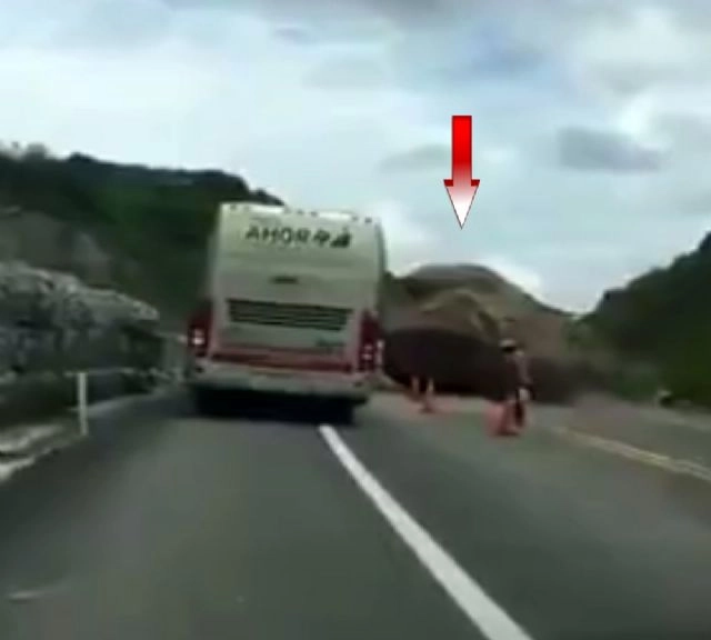 Meksika'nın Chiapas eyaletinde bir yola dev bir kaya düştü.Kayanın düşüşü sırasında yoldan araç geçmemesi ise faciayı önledi. Görevliler bölgede önlem alırken, yolda geçenler gördükleri manzara karşısında şok oldu. Dev kaya parçası da amatör kameraya yansıdı.