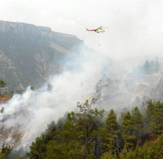 Mersin'in Erdemli ilçesinde çıkan orman yangınına 2 helikopter ve onlarca arazözle müdahale ediliyor.
